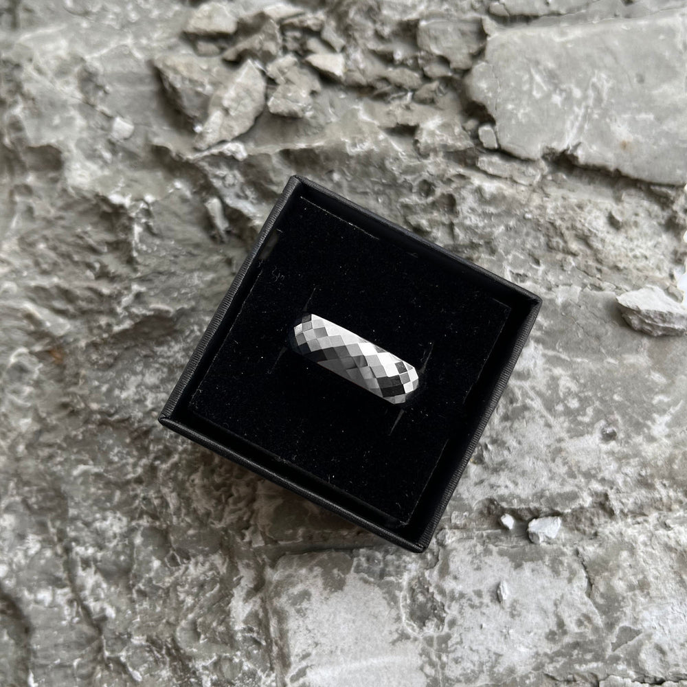 Latin for strong, Fortis is a masculine ring meticulously crafted from Tungsten - one of the hardest known metals to man. The diamond-cut texture adds a luxurious touch to this sleek ring finished with high polished, smooth contouring. Make it your everyday signature!