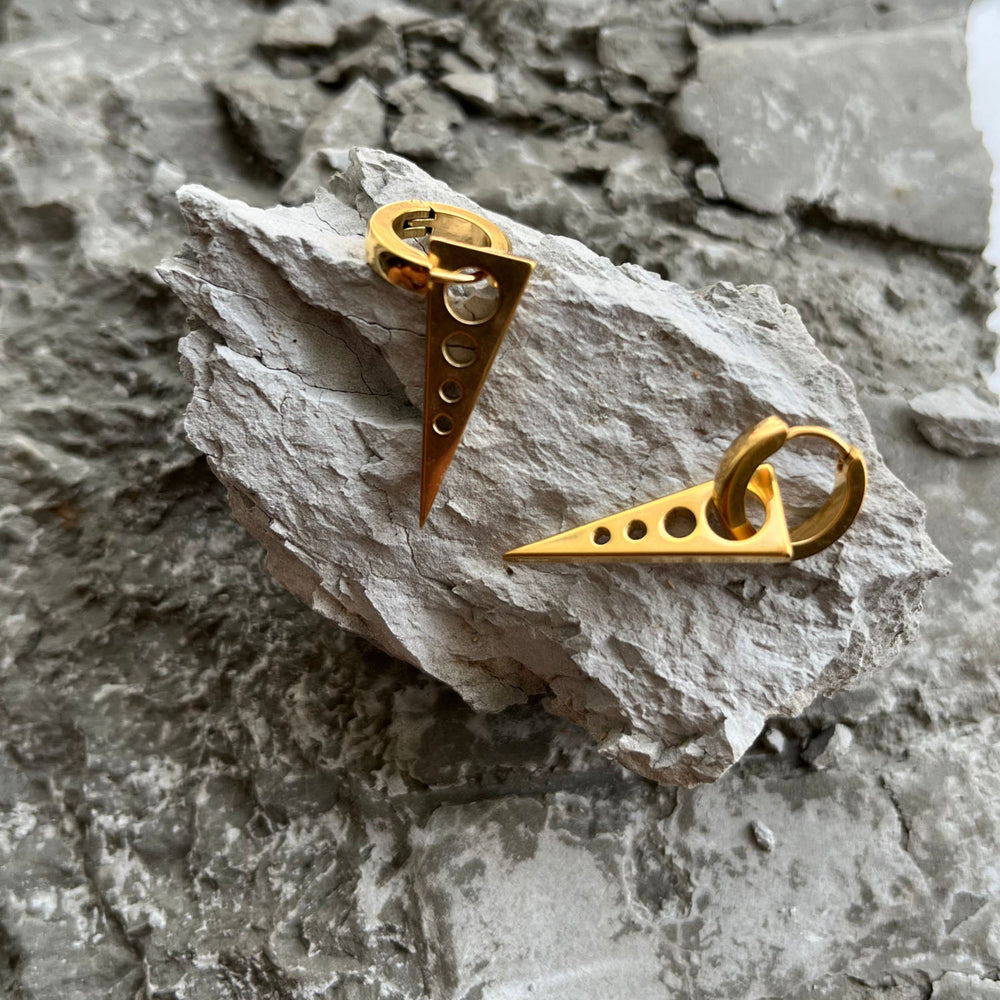 Pack on an electrifying edge with Volt. This pair of hoop dangle earrings in 14K Gold Bonded stainless steel, lends an edgy aesthetic to your modernistic style.