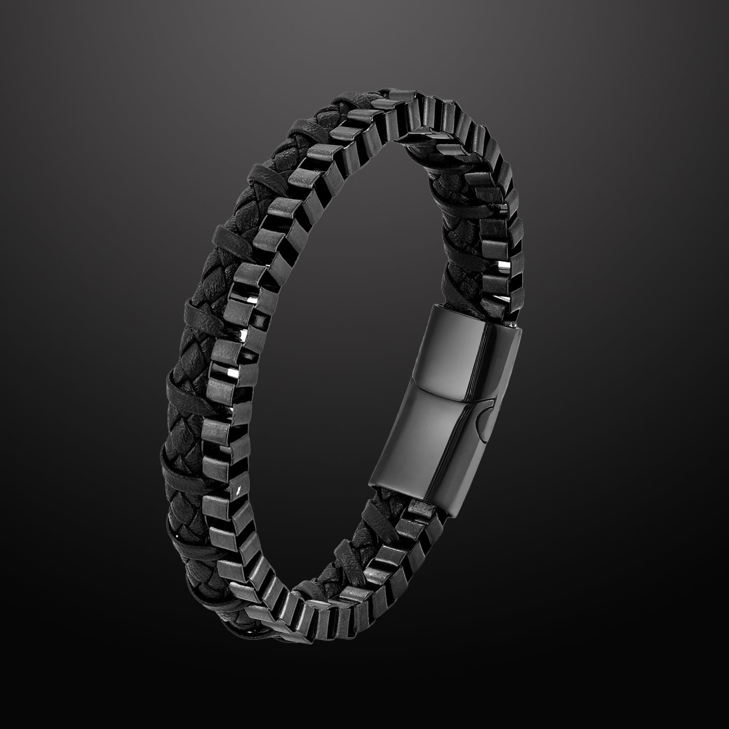 All black, tightened down. Carbon Line pairs braided leather with a dark steel edge for a stealth profile that stays sharp without shine. It reads clean, feels solid, and catches light only when it moves. Finished with a secure clasp built for daily wear. Strong solo piece, also stacks effortlessly with matte steel and leather.