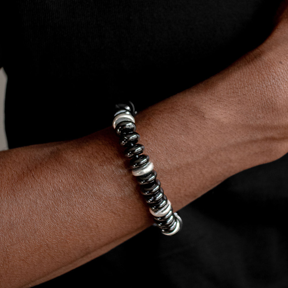 Expertly handcrafted with Black Onyx disk beads, our Explorer Bracelet is subtly exotic with hallmarks of a true adventurer. Pair this bracelet with the Explorer.